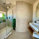 Villa Familiale Vue Mer comprend une salle de bains avec une douche à l'italienne et une toilette séparée. Un sèche-cheveux et des draps de bain sont également fournis.